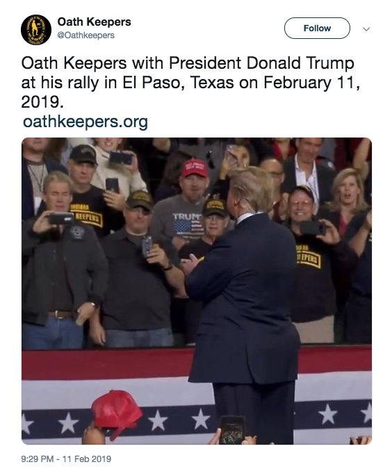 Looks like he's a member of the largest known anti-govt group Oathkeepers, comprised of military & cops, afraid of imagined threats from govt, w/ membership overlapping in white nationalist groupshttps://t.co/UHN7PixPK6 pic.twitter.com/xbqjn63tZY