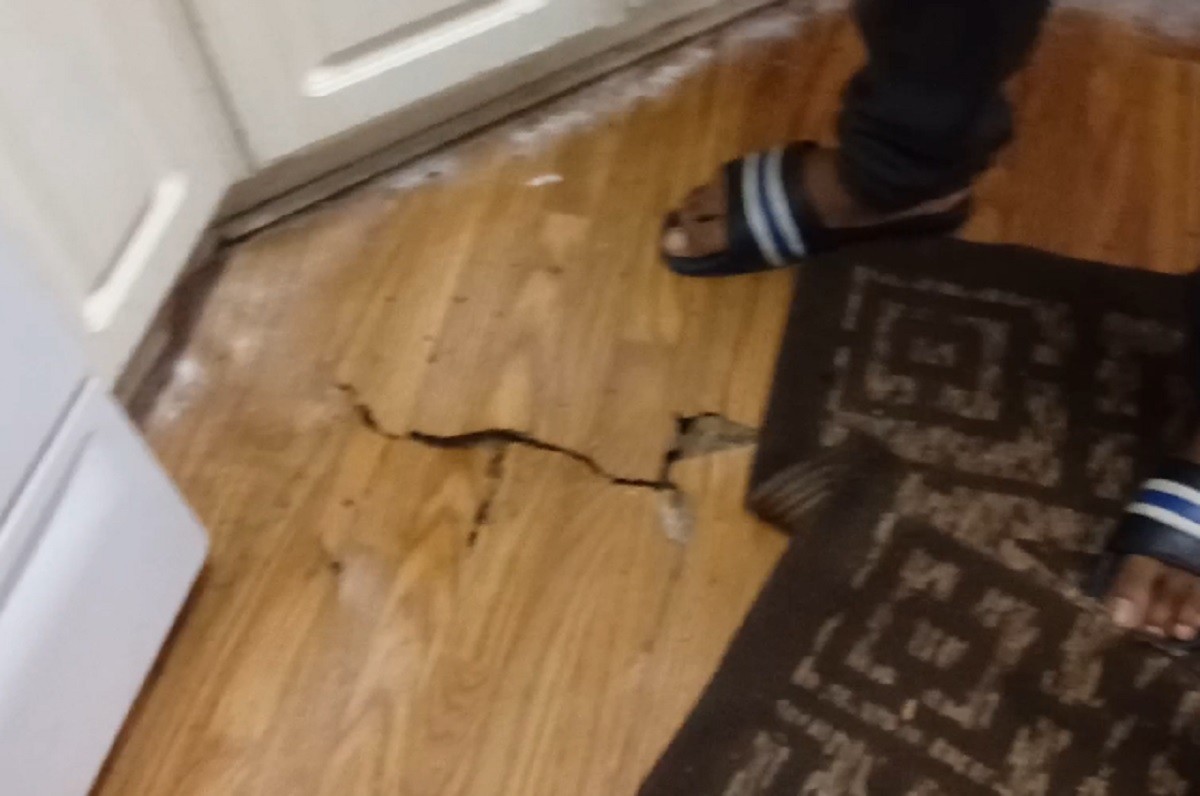 Over the past few weeks, we have gathered a number of testimonies that speak to the shitty management and poor living conditions. A 17-year-old who had lived here as a child but had been evicted along with his mother gave an interview about the conditions in the apartments and the way he and his family had been treated. He spoke about false accusations against youngsters, and the impossibility of reaching management to request repairs. Another resident gave an interview inside his apartment and showed the hole in his kitchen floor, which is larger than a foot in diameter and inches deep. Several tenants have also spoke