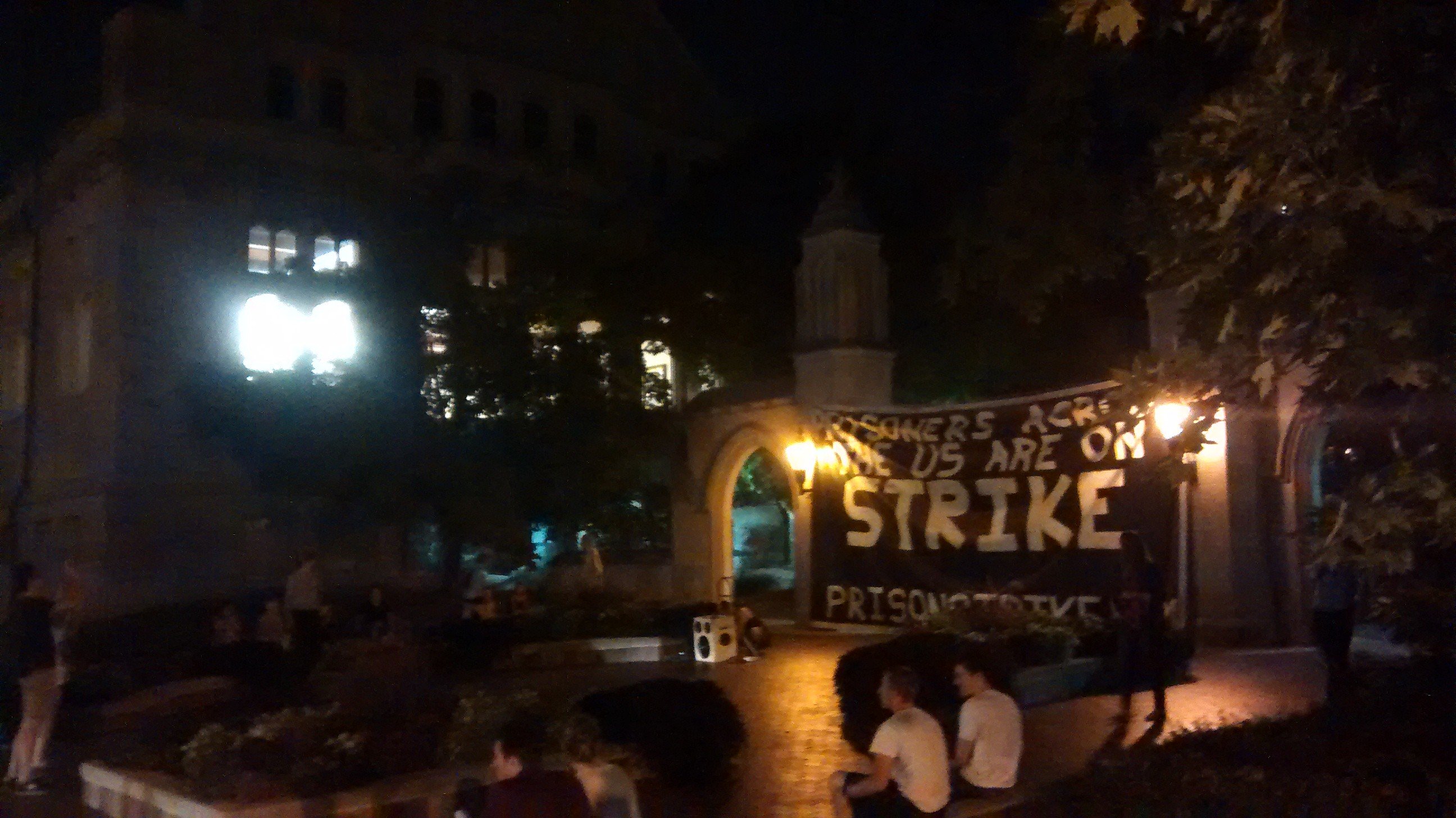 Acting in solidarity with prisoners going on strike throughout the country, we hosted a microphone demo at Indiana University’s Sample Gates in Bloomington.