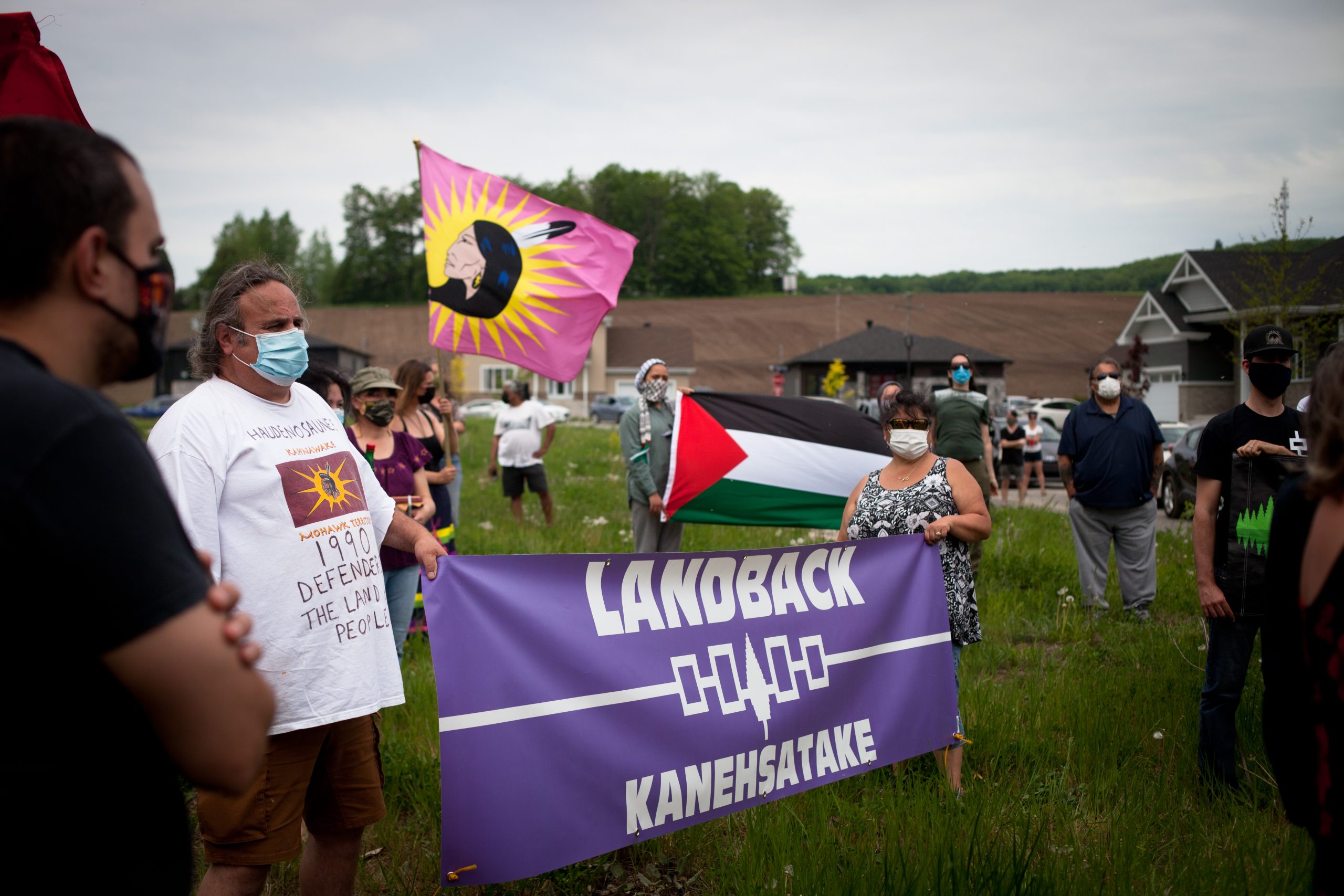 On May 22, the group Kanehsata:Ke Land Defence held a rolling blockade to protest ongoing land development pressures on the community. Community members and allies made up a blockade of around 100 cars and stopped at sites throughout the community, ending at the site of a housing development near the Pines. The Mohawk community of Kanehsata:ke has a long tradition of asserting their right to the land and fighting back against development, one notable example being the Oka Crisis of 1990.