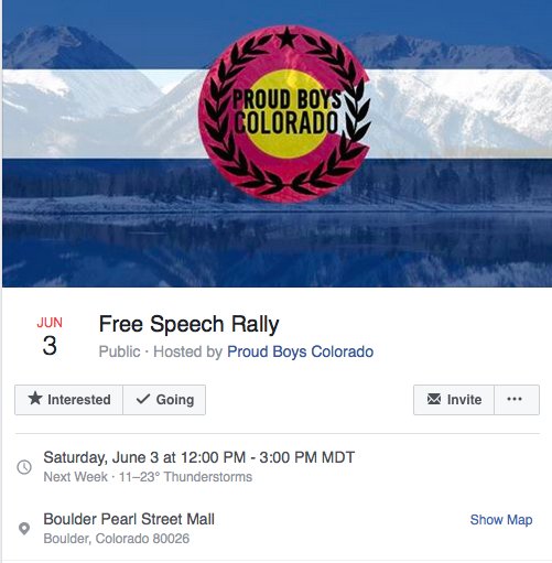 One is a “free speech” rally taking place in Boulder on Saturday, June 3rd, at the Pearl Street Mall at 12 PM.