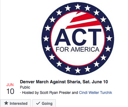 The other is a “march against sharia” on Saturday, June 10th in Denver at the Capitol at 3:30 PM.