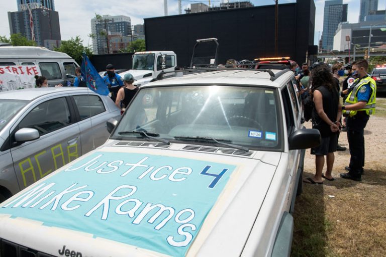 May 1st also marked a week since the murder of Mike Ramos by APD. Targeted for being a Black Latino man in a gentrifying sector of the city, Ramos’s execution was filmed and provoked outcry across the city. The shooting also came shortly after a third party report confirmed what many have known for years—that from top to bottom, APD is structurally racist. Demands for Justice for Mike Ramos were featured prominently in the caravan.