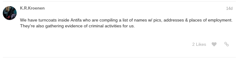 Locally, Nazis from the Daily Stormer Forum’s “Denver Book Club” had been discussing their intentions on attending the rally, but apparently a hundred Antifa (hahaha) were enough to dissuade them from going “full fash.” A few still went in their “civic nationalist”/crypto-fascist uniform, but a Nazi looks like a Nazi in any disguise.