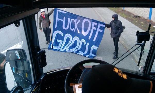 Protest against tech buses in bay area in early 2010s. SOURCE: https://fuckoffgoogle.de/