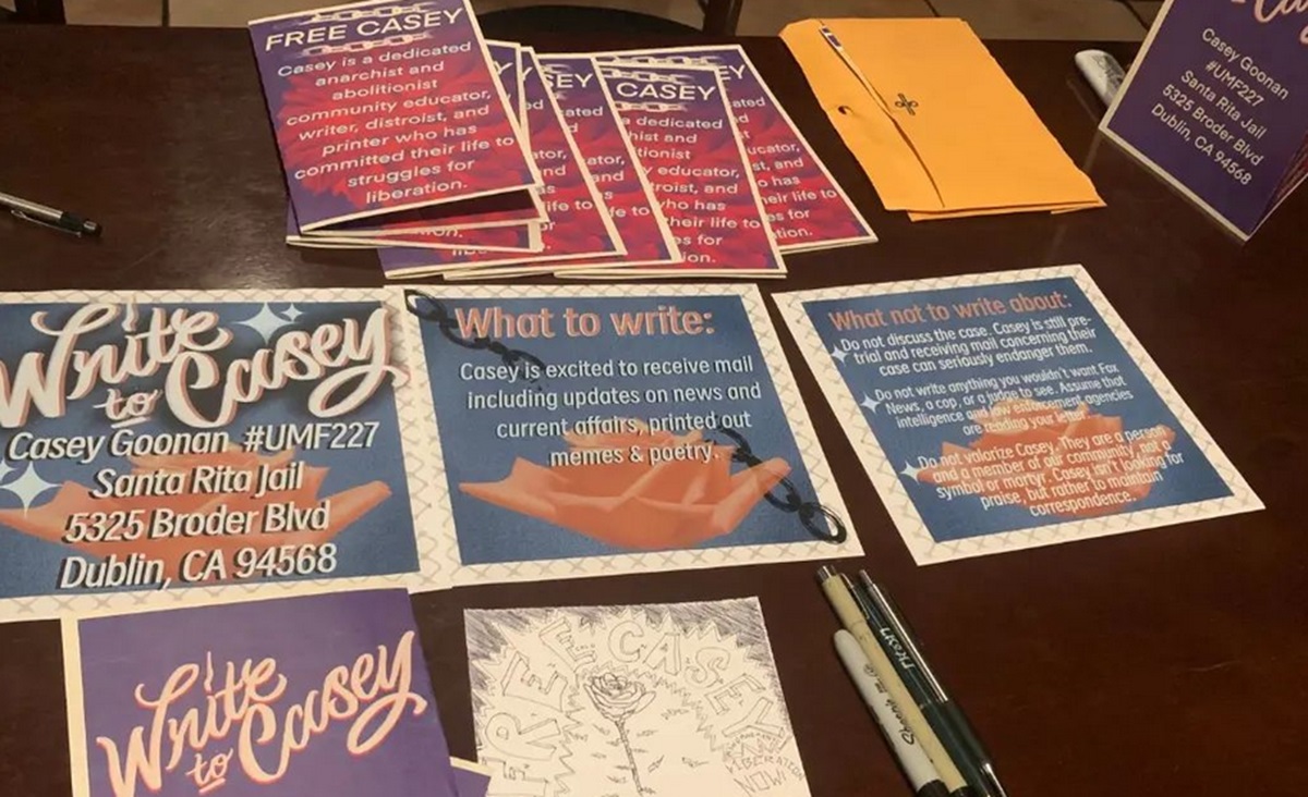 Mongoose Distro have produced a new short pamphlet about the ongoing case of Casey Goonan, which you can download here. More updates can be found at the Free Casey Instagram page. Casey’s support crew also has a new website and you can now donate via Paypal. A recent update reads:
