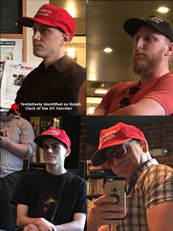 At exactly 9PM the Potter’s House closed, the Nazis were required to leave immediately and complied, with antifascists then following them out. The Nazis retreated up Columbia Road to a park, where they challenged an Antifa detachment that followed them to a fight. Knowing that the alt-right in DC has the bad habit of starting fights only to immediately run to the cops this “bad faith” offer to fight it out was refused. The Nazis then tried to get into a taxicab – only to be ejected just as Richard Spencer was back in April. They finally escaped from Mt Pleasant in a second taxicab, again following Spencer’s example. ![]()