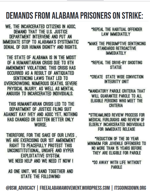 Alabama Prison Strike Solidarity Poster PDF – With Demands