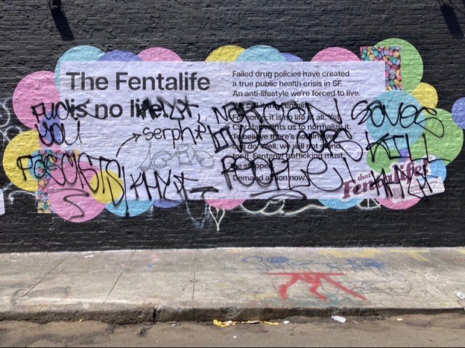 A “street art” campaign backed by Welsh tech billionaire and venture capitalist Michael Moritz is being targeted by graffiti artists in San Francisco, California. The campaign features posters and even wheat-pastes which call for a “law and order” approach to homelessness and fentanyl related deaths in San Francisco.