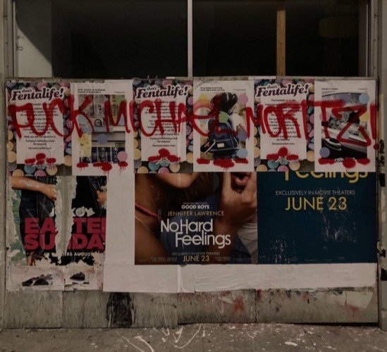 Graffiti reads, “Fuck Michael Moritz!” Source: Indybay.org