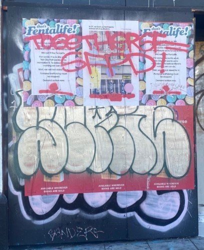 These disturbing posters are part of a $300k campaign, by reactionary group Together SF (who are funded by billionaire venture capitalist Michael Moritz), that is shaming drug and Narcan users, and calling for the racist criminalization of poor people. They are also calling for the criminalization of graffiti while themselves wheat pasting posters on the streets.