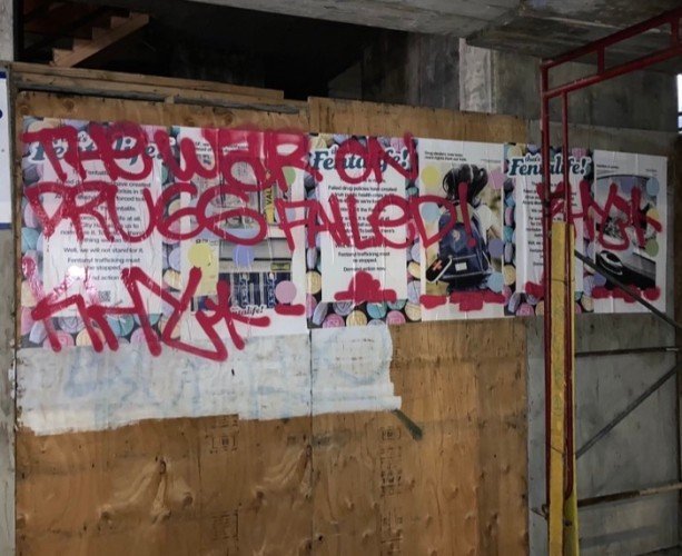Graffiti of billionaire backed “street art” reads, “The War on Drugs Failed!” Source: Indybay.org