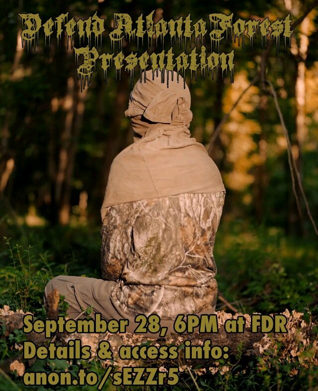 Join us for an in-depth overview and conversation with on-the-ground activists involved in the historic movement to Stop Cop City and Defend The Atlanta Forest.