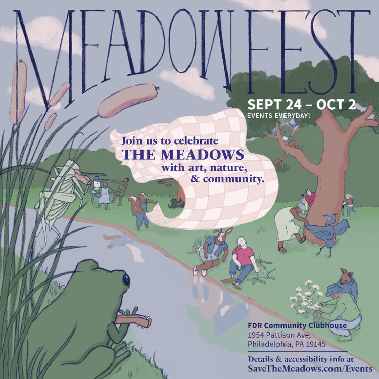 Location: Meadows Picnic Grove at FDR, 1954 Pattison Ave, Philadelphia, PA. Enter the Meadows from the 20th street parking lot by walking west through the community gardens and past the clubhouse.