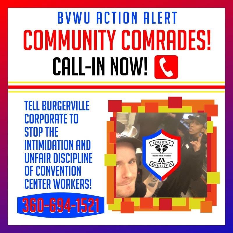 Call for a phone zap campaign in support of members of the Burgerville Workers Union who are being targeted by Burgerville corporate for organizing on the job in the Pacific Northwest.
