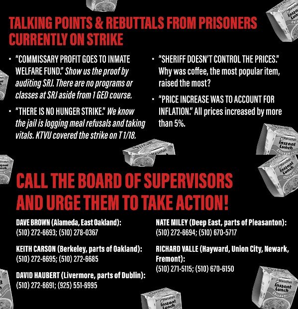 We are calling on all of you to support the hunger strikers in Santa Rita Jail. Phone zap coming up this Friday!