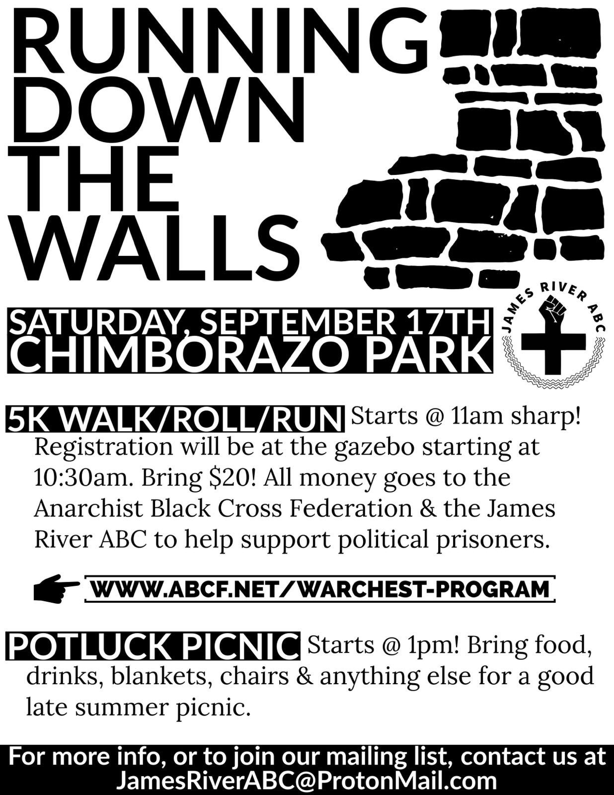 The Anarchist Black Cross Federation announces Running Down the Walls events across the so-called US for 2022.