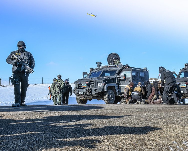 Then they came for our Sacred Stone Camp, the original spirit camp we built to lay our prayers and our water from the Dakota Access Pipeline. But this time, they were accompanied by the Standing Rock Sioux Tribal Council. They had no warrant, but they forced their way onto my private land, my family’s land, where I grew up on the banks of the Cannonball River. It was our own council members together with the Standing Rock Fish and Wildlife Service, the Bureau of Indian Affairs (BIA), the Bureau of Alcohol, Tobacco, Firearms and Explosives (ATF), and the US Army Corps, all seeking to evict me from my homeland.