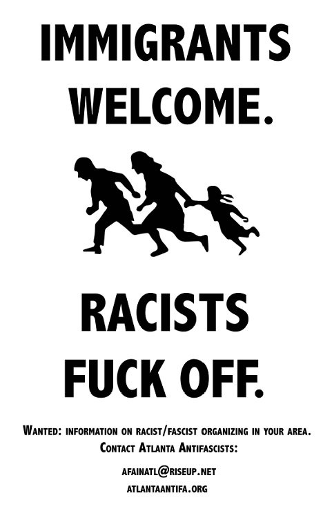 You can find some designs here on our website. You can download PDFs with these messages and print them out, or make your own anti-racist and anti-fascist messages.