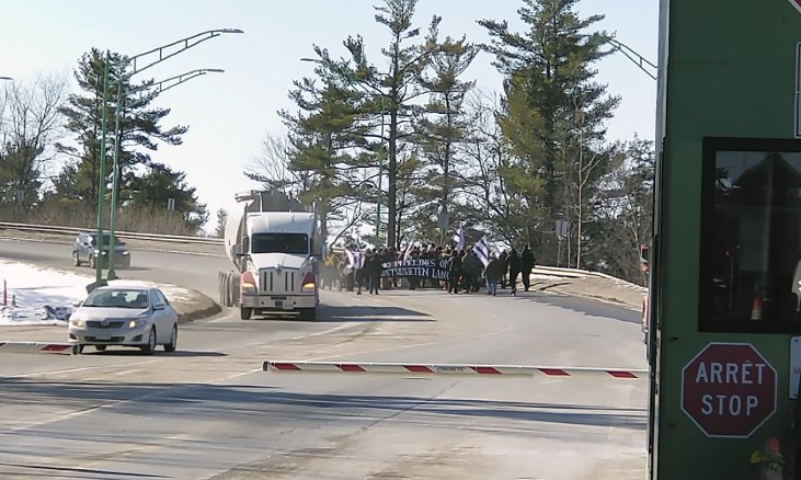 The occupation was relatively short, and this was the first time most participants had ever done anything like this, but it had a sizeable impact. The border crossing was closed for much of the afternoon, and commercial transports were backed up for kilometres, eventually causing police to close Highway 137, sections of the Thousand Islands Parkway and the 401 exit to the border. It’s our understanding that the closure also caused a massive backlog at the Ogdensburg-Prescott international bridge 80km east.
