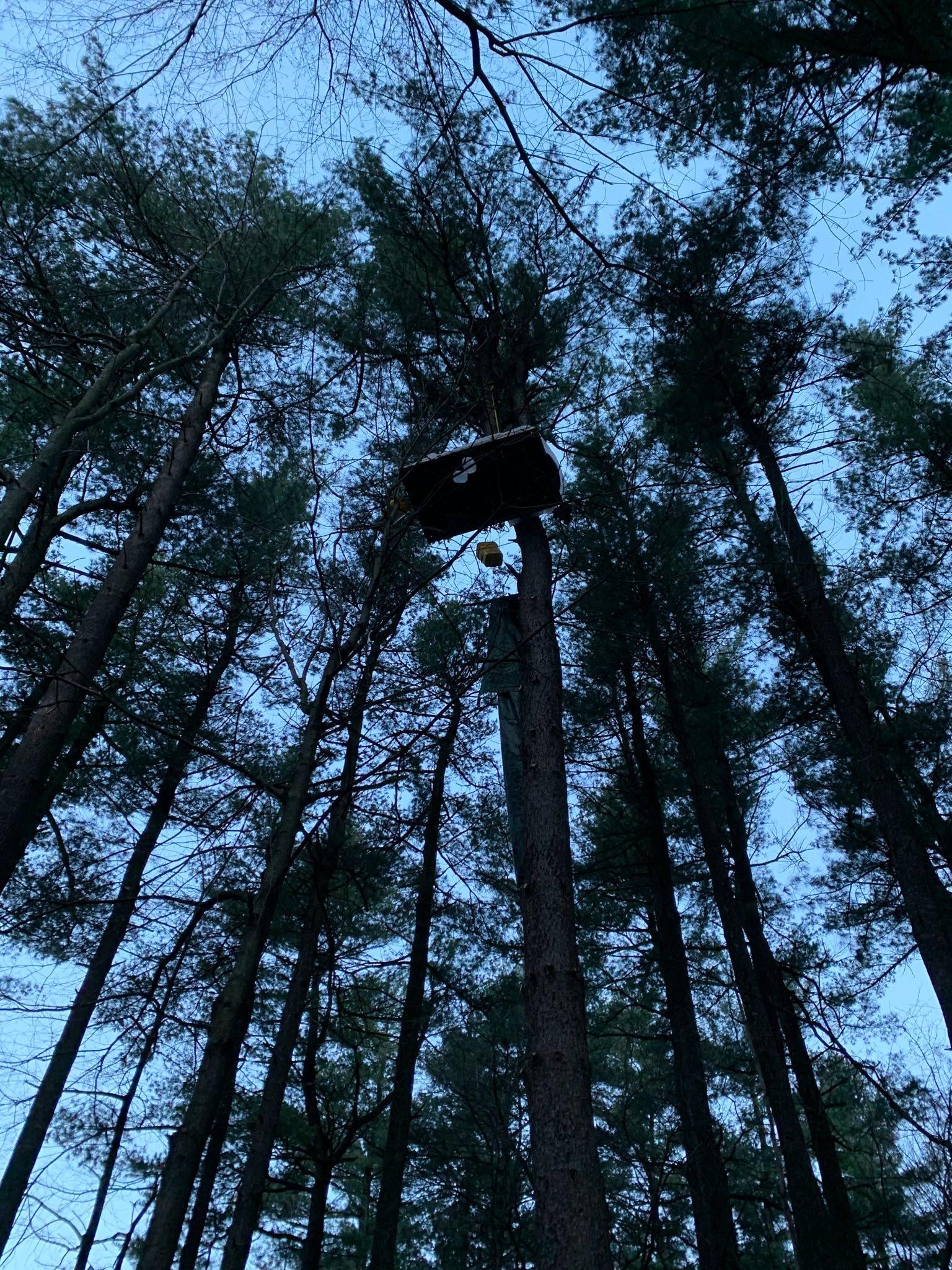 On Monday morning, a forest defender calling themselves Nuthatch climbed a pine tree on the site of the Concord Pines development at 660 Earhart Rd in Ann Arbor. They intend to live in the tree indefinitely in order to prevent it and other surrounding trees from removal at the hands of the developer. Supporters occupied the forest floor immediately around the tree to show solidarity with Nuthatch and their distaste for luxury housing construction in the midst of a climate and housing crisis. The sit is part of an ongoing campaign of actions beginning in late March, which together have successfully delayed work for at least 24 hours.